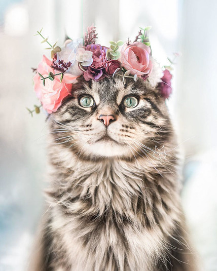 Отметим, что особенно сильно смог раскрутить цветочные короны Ярели кот породы мейн-кун по кличке Леонидас (Leonidas), у которого на данный момент в соцсетях накопилось более 150 тыс. подписчиков.