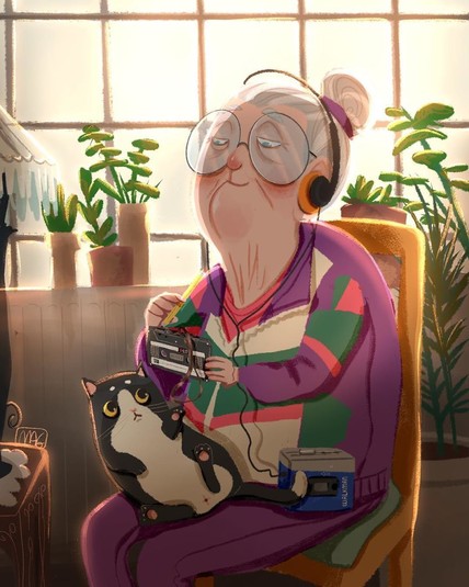 Женщина изображает этих милых существ дремлющими рядом с детьми, играющими со старыми кассетами, пока их любящий хозяин слушает музыку, наслаждающимися семейными поездками или просто забавляющимися со своими сородичами.