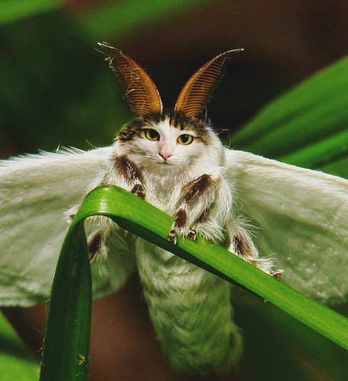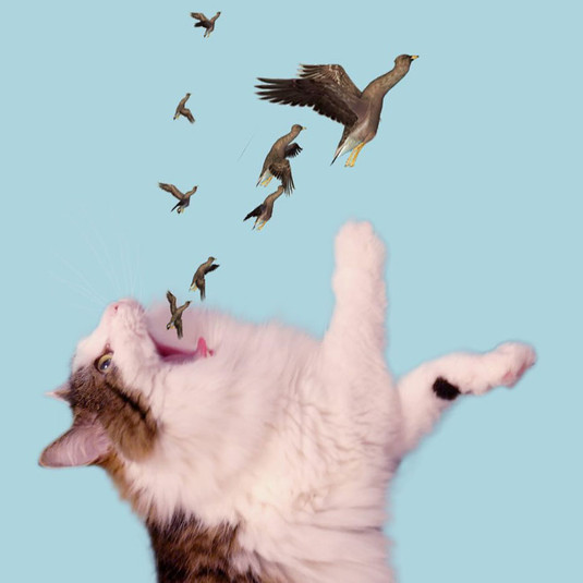 Один из ее продолжающихся проектов — это странные и необычные фотоманипуляции с участием двух ее любимых домашних питомцев: кота по имени Оскар и кошки Майи.