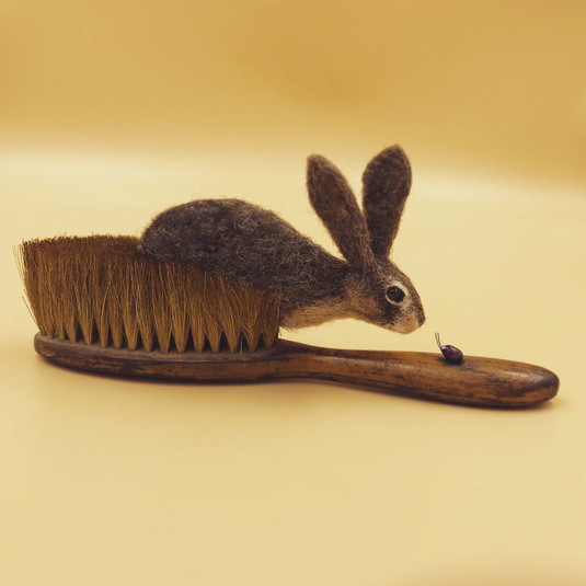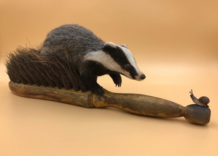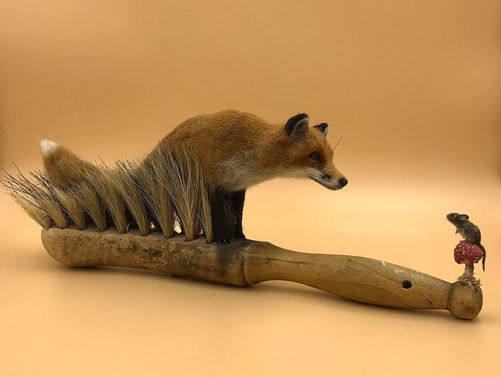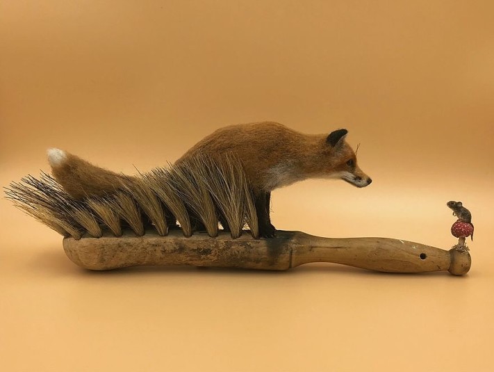В результате у художника получаются весьма органично подобранные работы, в которых органично сочетаются игрушечные звери и старые щётки, смотреть на которые без умиления просто невозможно.