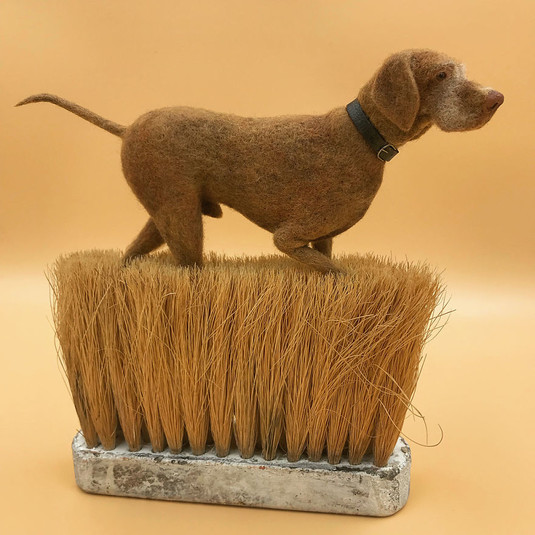 Одной из его последних работ являются необычные композиции, в которых он свои войлочные изделия объединяет со старыми, отработанными, никому не нужными щетками.
