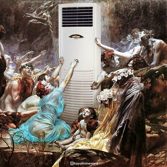 Дизайнер Хаятинин Эврени, арт-директор, визуальный дизайнер и фотограф из Никосии, органично соединяет персонажей классических полотен с реалиями современного мира, и его работы полны иронии и тонких отсылок к разным культурным аспектам.