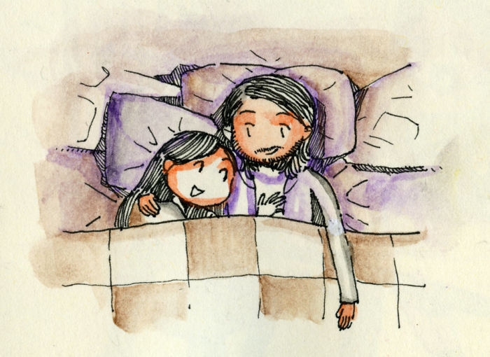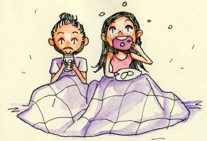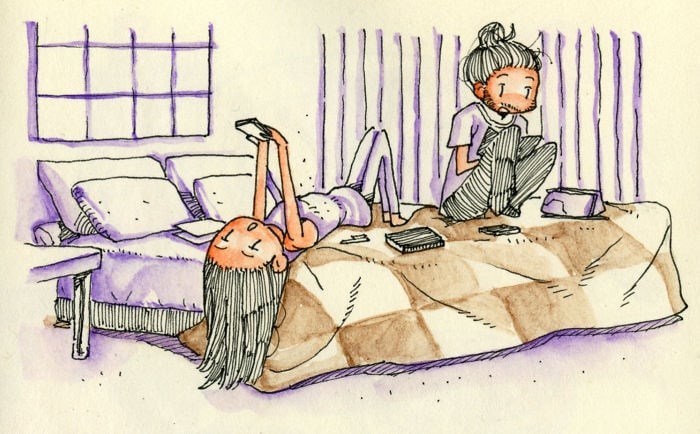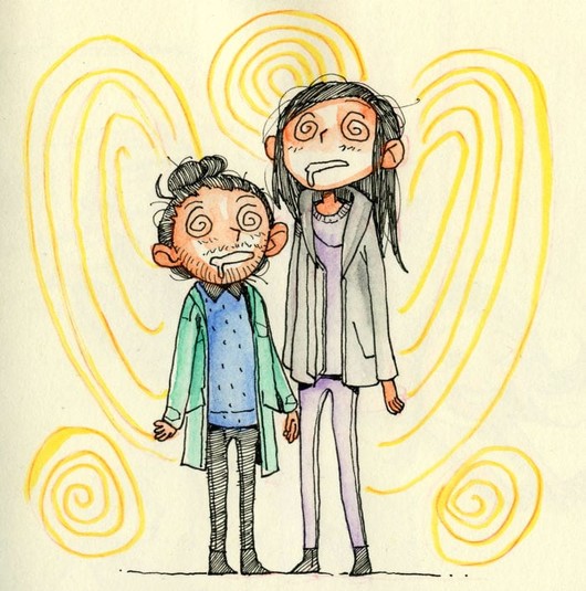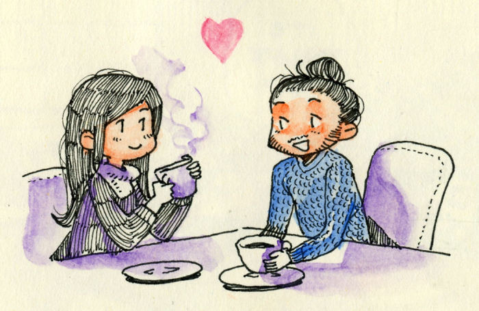 Итальянский художник по имени Симоне Ферриеро влюбился в девушку из Канады, хотя ни разу не видел её вживую. Симоне решил во чтобы то ни стало встретиться со своей любимой и купил билет на самолёт. Первую встречу и все то, чем занимались влюбленные на протяжении нескольких недель, художник запечатлел в своих иллюстрациях и опубликовал на своей странице в соцсети.
