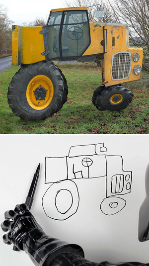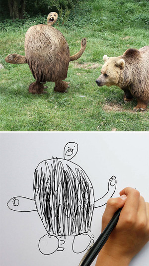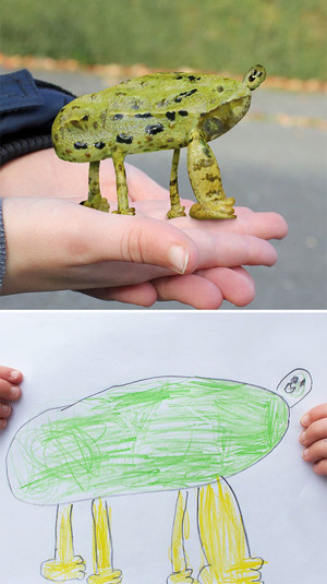 Том берет за основу рисунок ребенка и переносит его в реальный мир. Чаще всего на них изображены различные животные, но нередко встречаются и люди, анимационные и киногерои, различная техника и даже произведения искусства. Глядеть на некоторые из них без улыбки действительно сложно.