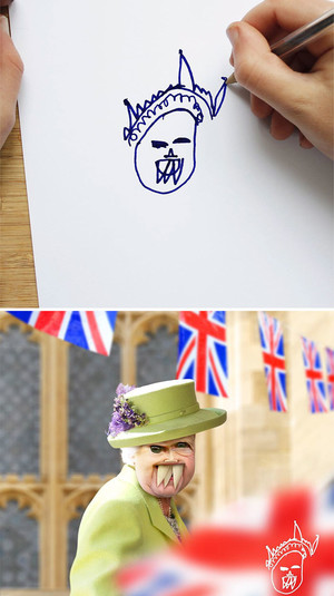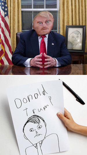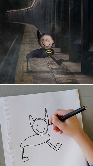 Креативный папа, мастерски владеющий фотошопом, переносит рисунки своего маленького сына в реальность.