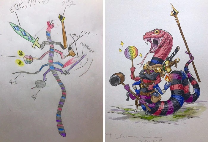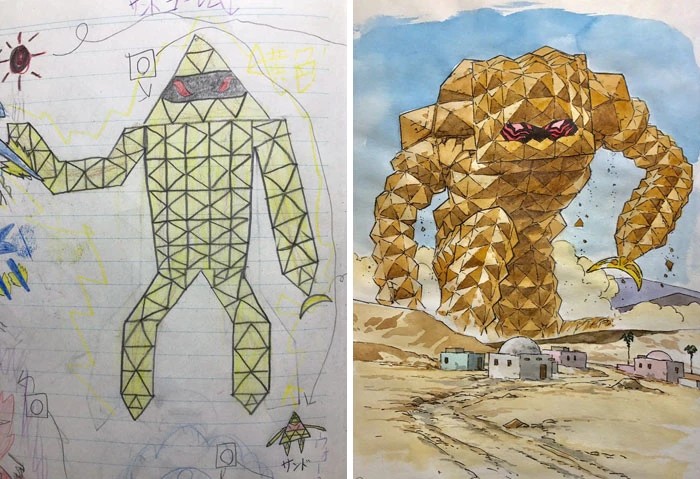 Художник превращает наброски своих сыновей в рисунки мультяшных персонажей