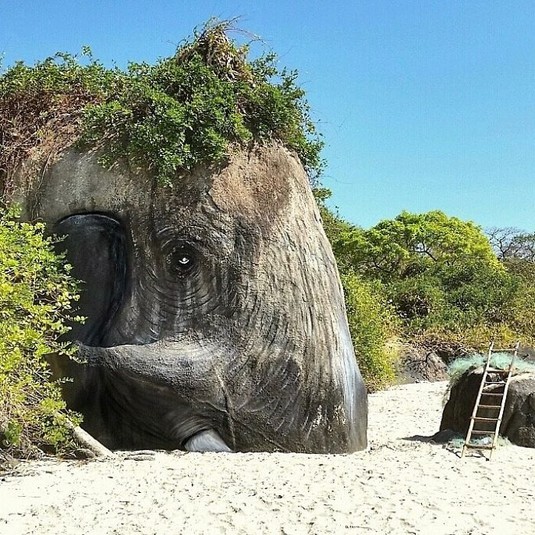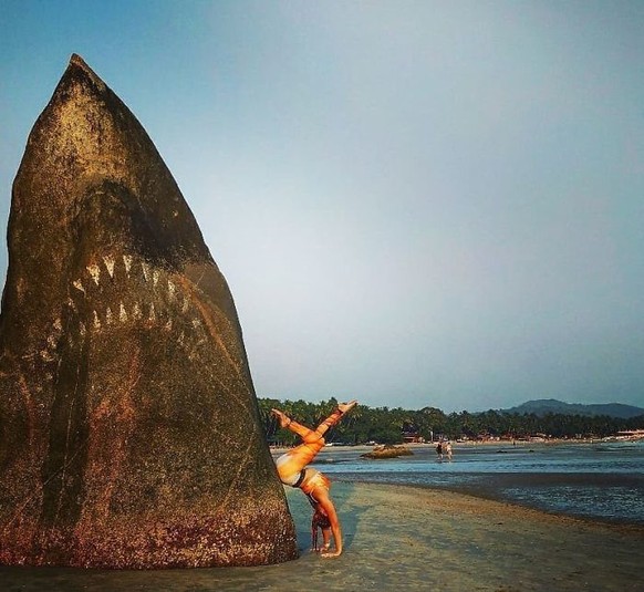 Художник Джимми Свифт превратил выступающий из воды камень в Южном Гоа, Индия, в голову акулы из киноленты «Челюсти» — и его работа действительно выглядит впечатляюще