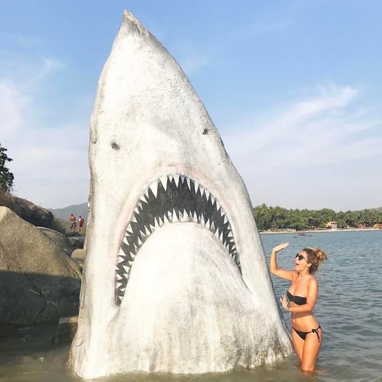 Выступающая из воды во время прилива скала в кровожадного морского хищника была преобразована американским художником Джимми Свифтом, который посчитал, что твердая горная порода невероятно походит на голову существа из знаменитого фильма ужасов «Челюсти».