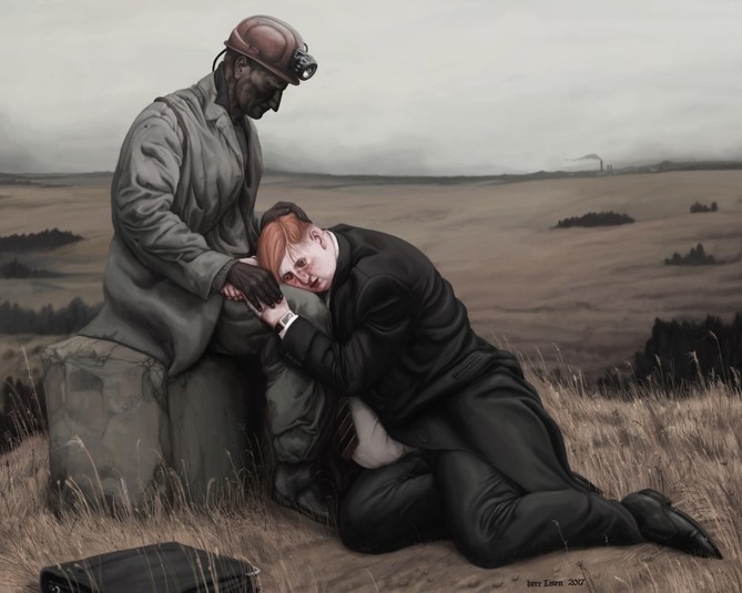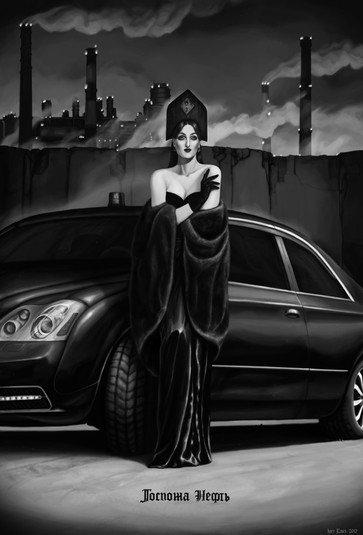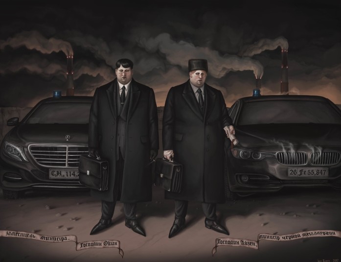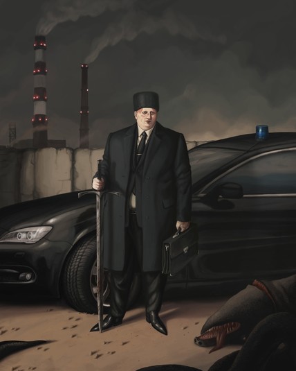 Однако персонажи ее будущей книги выглядят как герои антиутопии: министр черной металлургии Айзен, заместитель министра Октан, загадочная и мрачная дама Нефть. Они носят строгие деловые костюмы, ездят на черных мерседесах по заснеженным мрачным трассам, общаются с себе подобными чиновниками и сражаются с чудовищами.