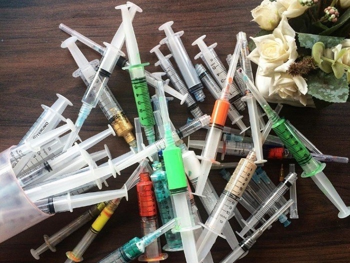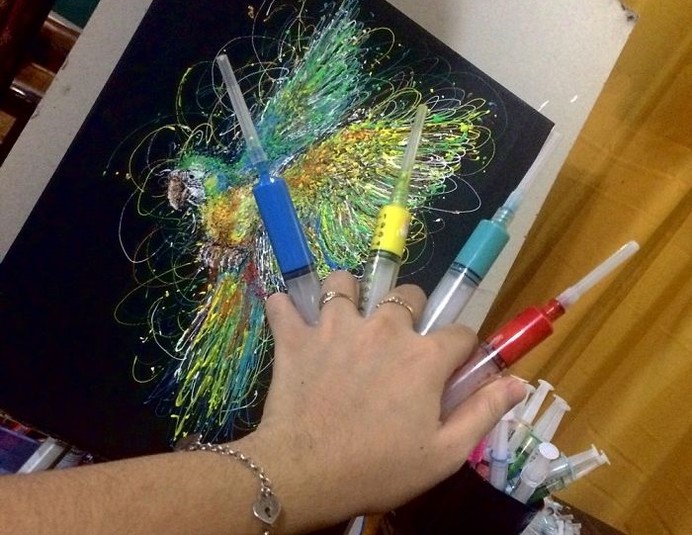 «Инъекционное искусство»: Девушка создает картины, используя шприцы вместо кисти