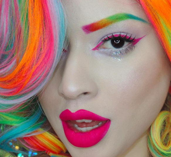 Новый тренд #rainbowmakeup быстро распространился по сети и уже достиг пика популярности. Учитывая сумасшедшую популярность фантастических лент наподобие «Голодных игр», а также «Звездных войн», радужные брови, как и одноименное разноцветное окрашивание волос, считается законнорожденным детищем тотального увлечения футуризмом.