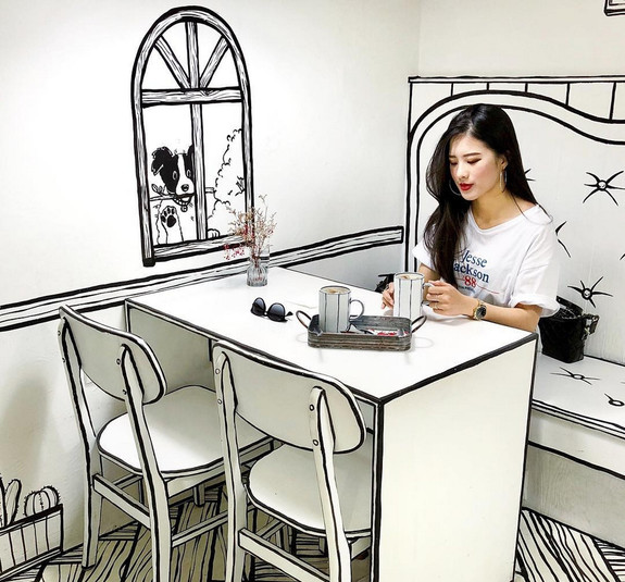 Интерьер в стиле веб-комикса: В Сеуле появилось кафе, посетители которого попадают в нарисованную реальность