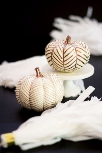 При помощи достаточно доступных средств можно обычные тыквы превратить в прекрасный предмет декора даже без оглядки на празднования Дня Всех Святых.