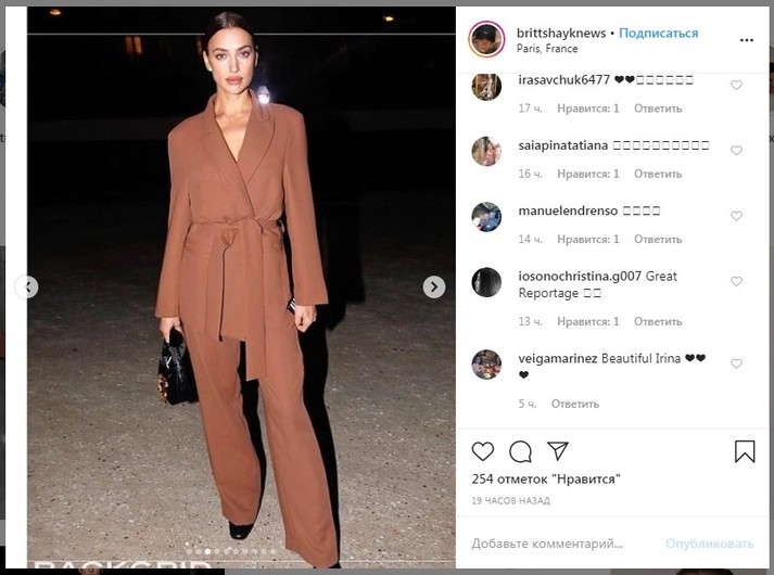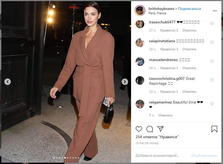 На днях знаменитость заметили на улицах Парижа в уютном кашемировом костюме цвета кофе с молоком.
