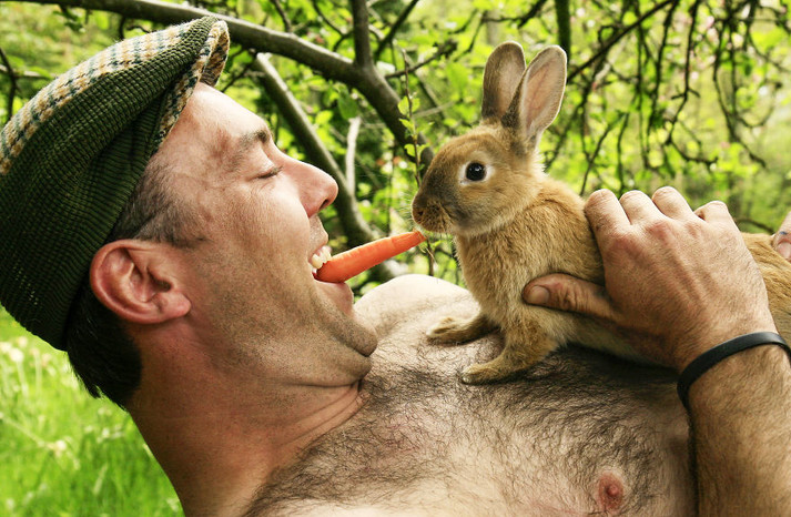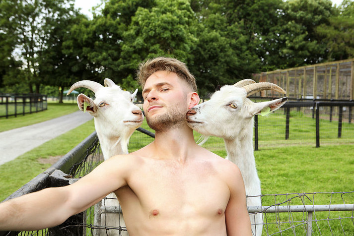 Они совместили всё самое прекрасное – обнаженный торс и милых животных.
