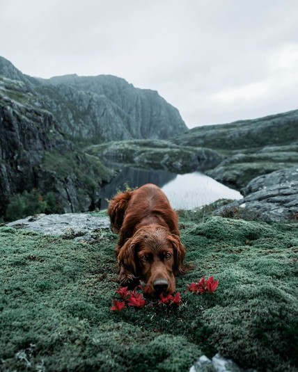 Ирландский сеттер путешествует вместе со своим хозяином по Норвегии: забавные фото