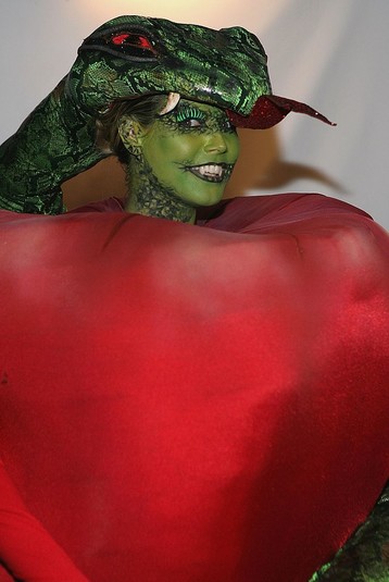 Из года в год Клум поражает нас своими небанальными, невообразимыми перевоплощениями.Знаменитая красотка серьезно относится к подготовке своего костюма для каждой вечеринки: на создание последнего ее хелоуинского образа уходило по 9 часов.
