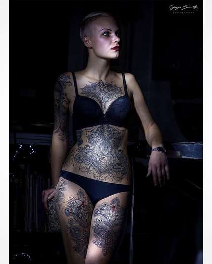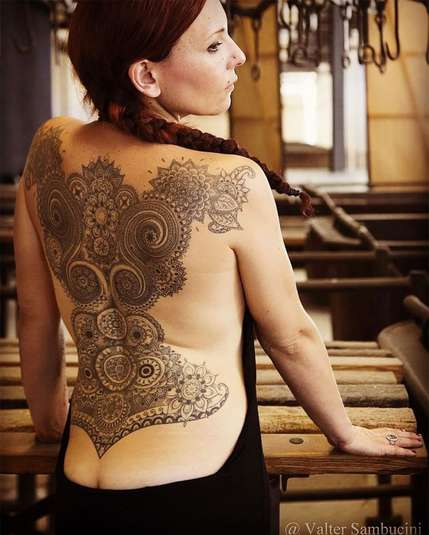 Итальянский художник-татуировщик Марко Манзо привнес в мир боди-арта утонченность, создав татуировки в виде венецианских кружев и викторианских украшений