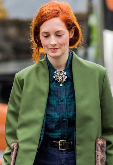 Прежде всего, настоятельно советуем забыть о всевозможных модных стереотипах касательно ношения брошек. Совсем необязательно тщательно собирать образ а-ля 40-е или 50-е годы, чтобы выгулять этот аксессуар. Перманентно набирающий обороты модный mix&match и здесь«приложил руку»: сегодня брошь носят не с классическим пальто-коконом и туфлями kitten heels,а скорее с mom jeans, бомбером и кроссовками.