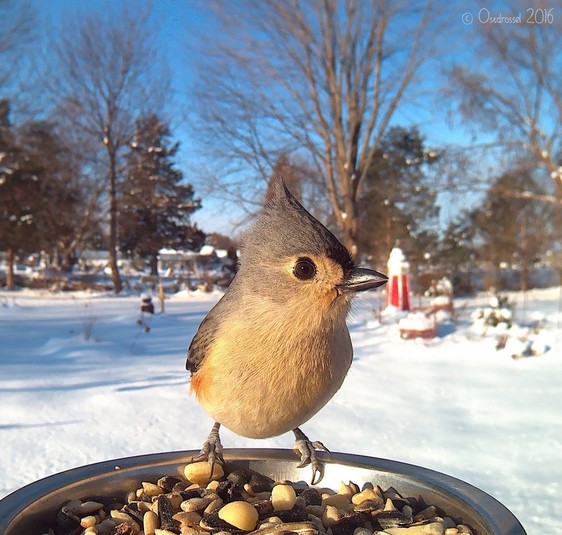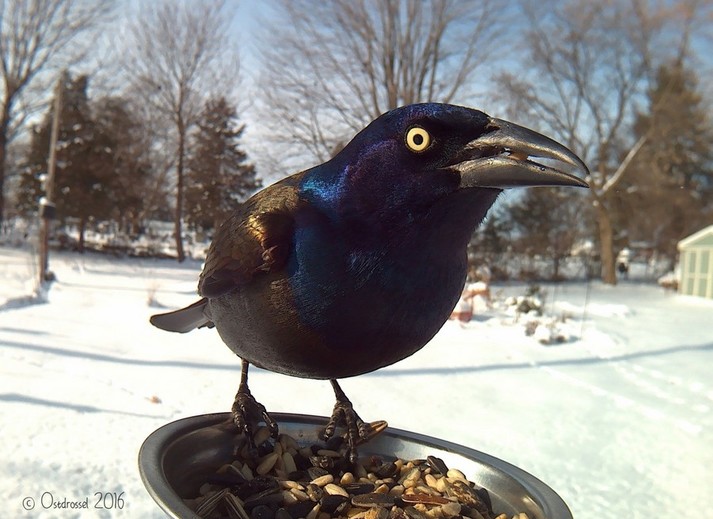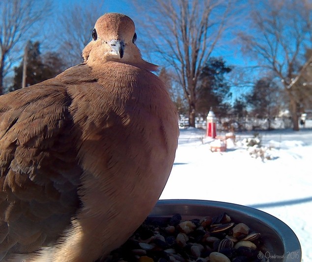 Чтобы ближе изучить пернатых, она установила специальную фотобудку для птиц, снабжённую кормушкой и отсеком для крепления фотокамеры. Это устройство предназначено для макросъёмки дворовых птиц.