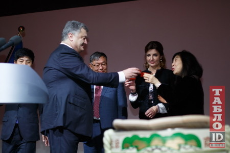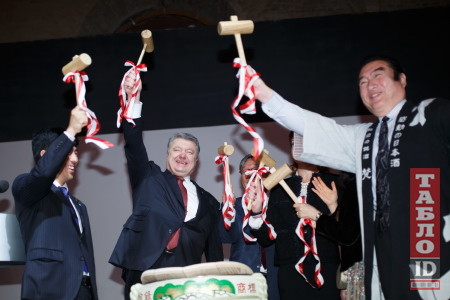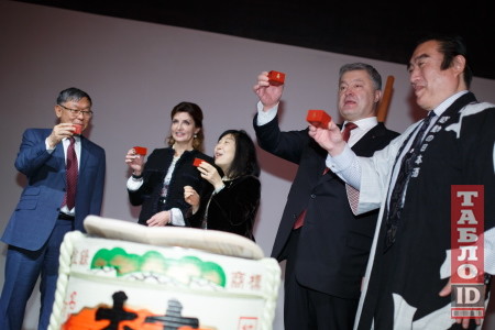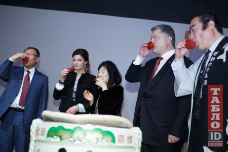 В ходе мероприятия заместитель министра иностранных дел Японии Кадзуюки Накане вместе с чрезвычайным уполномоченным послом Японии в Украине Шигеки Суми угостили главу нашего государства японским саке.