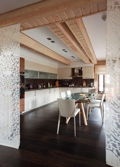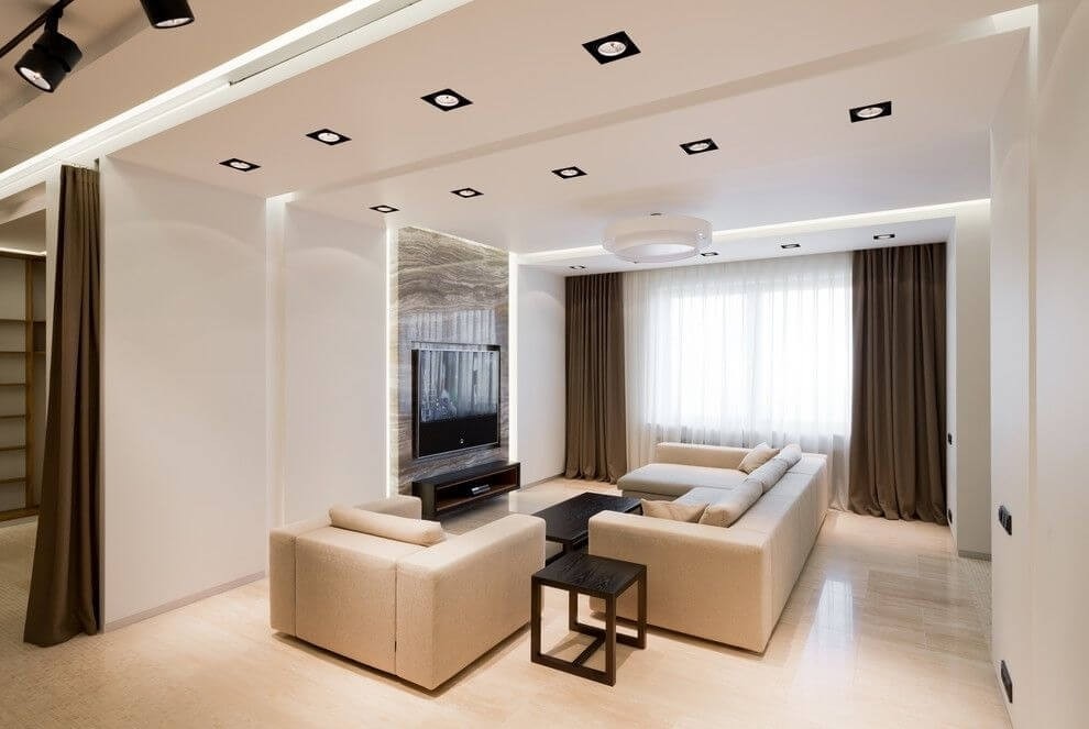 Даже полупрозрачные шторы визуально разделяют пространство большой комнаты.