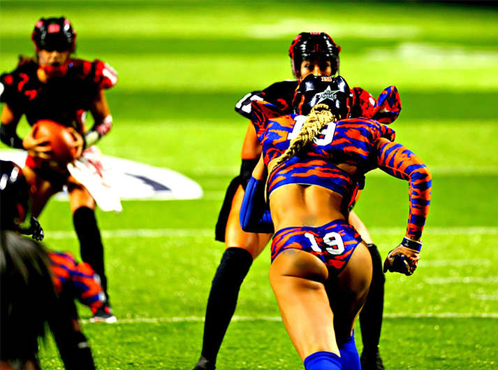 Девушки играют в формате 7x7. Турнир зародился в 2004 году. В перерыве Супербоула на радость зрителям был разыгран Кубок нижнего белья: команда «Эйфория» победила «Мечту» со счетом 6:0.