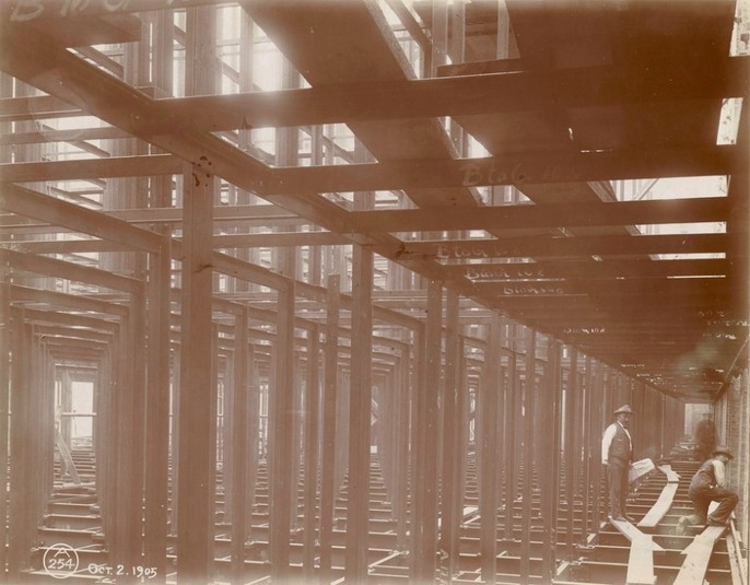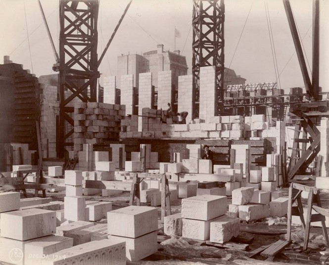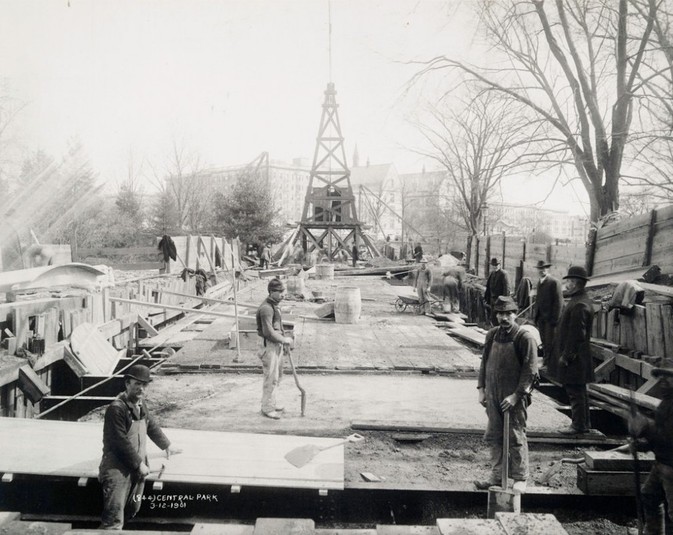 Представленные ниже фотографии, увековечившие процесс строительства крупнейшего города США, хранятся в архиве Нью-Йоркской публичной библиотеки.