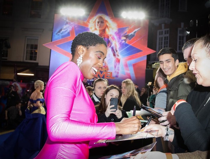 Уже 8 марта на экраны выйдет приключенческий боевик «Капитана Марвел» с Бри Ларсон в главной роли. Вместе с коллегами по фильму - Джудом Лоу, Джеммой Чан и Сэмюэлем Л. Джексоном - Бри представила картину в лондонском кинотеатре Curzon Mayfair.