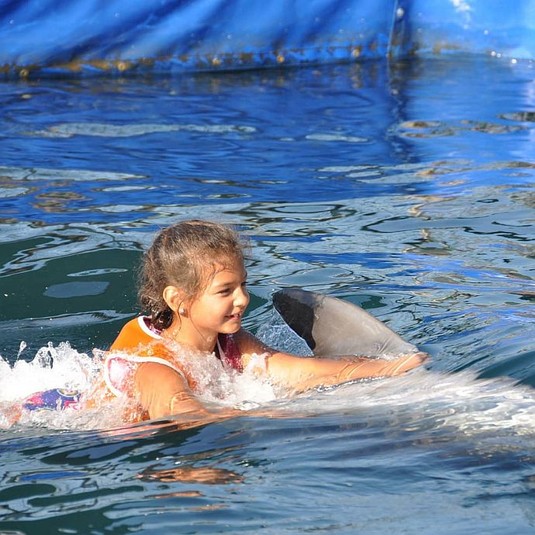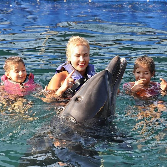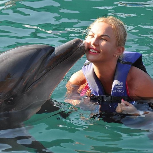 Во время отдыха в Мармарисе, Турция, артистка вместе с дочками посетили местный дельфинарий, где поплавали вместе с дельфинами. Фотографиями певица поделилась в Instagram.