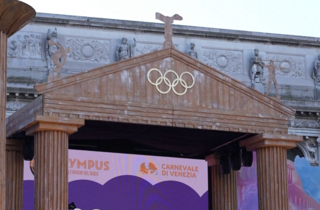 Венеційський карнавал традиційно збирає сотні учасників, які змагаються за звання найкращої маски фестивалю. Фіналісти конкурсу зібралися на площі Сан-Марко, де встановили головну сцену, стилізовану під давньогрецький храм із олімпійською символікою. Артдиректор карнавалу Масімо Кеккетто пояснив, що тема цьогорічного заходу пов’язана з майбутніми зимовими Олімпійськими іграми Мілан-Кортіна-2026.