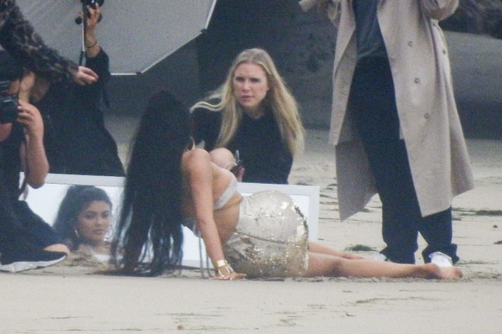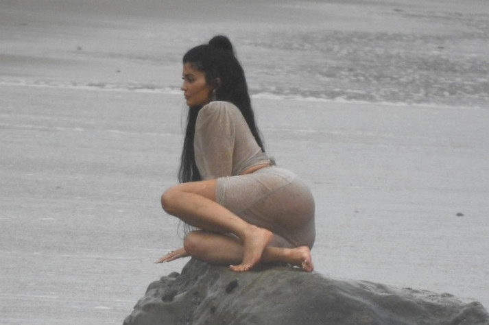 21-летняя Кайли Дженнер попала в объективы папарацци во время модной съемки на пляже в Малибу