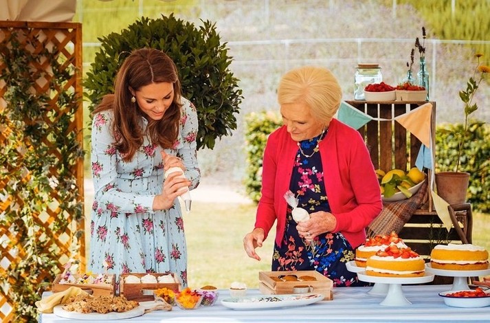 Облачившись в фартуки, герцог и герцогиня Кембриджские помогали ведущей, известной шеф-повару Мэри Берри, готовить праздничные блюда.