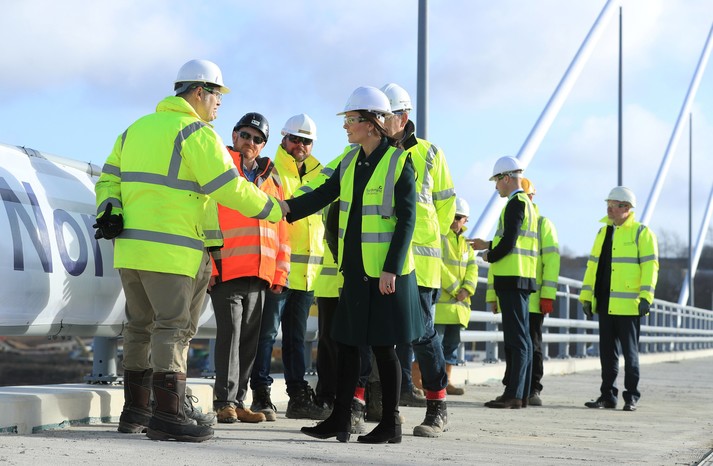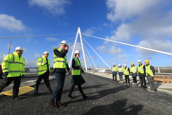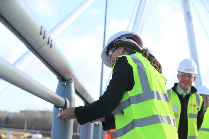 А после этого монаршие особы побывали на стройке Северного шпиля – моста через реку Уир. Его открытие запланировано на весну этого года.