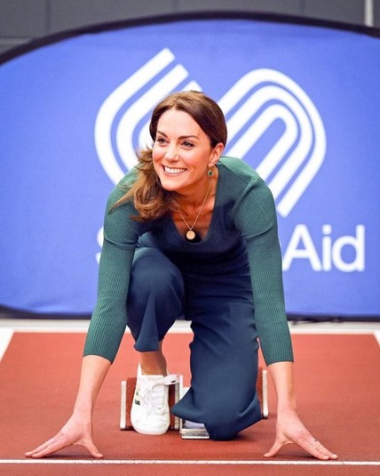 В таком образе жена принца Уильяма пробежала кросс, став партнершей по спринту для звезды легкой атлетики Джессики Эннис. Кроме этого, Кейт Миддлтон охотно выполнила упражнения дзюдо и теквондо.
