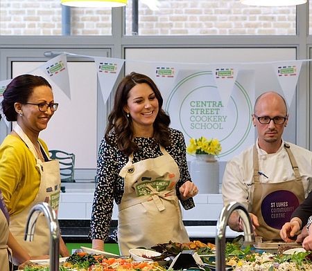 В ходе встречи Миддлтон также проявила свои поварские таланты, надев бежевый фартук.