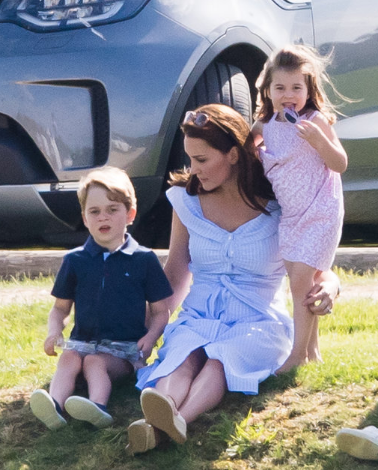 Герцогиня Кембриджская Кейт Миддлтон посетила поло-клуб вместе с принцем Джорджем и принцессой Шарлоттой. Тем самым семья поддержала принца Уильяма на этих благотворительных соркевнованиях.