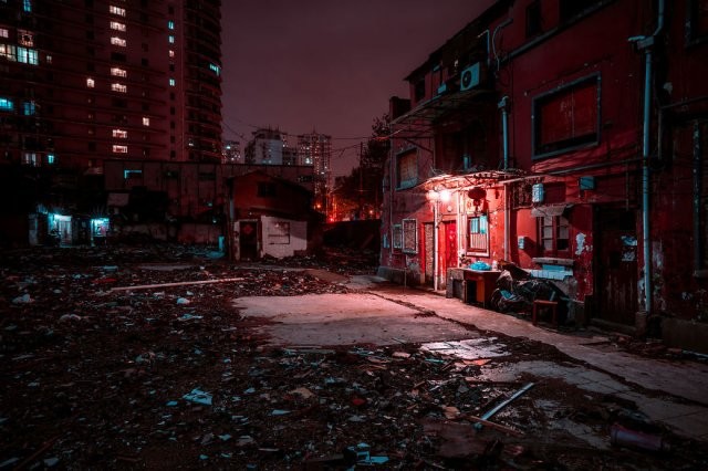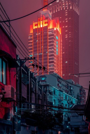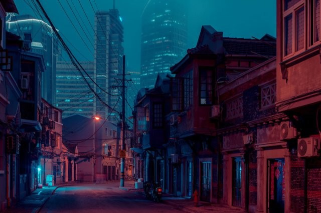 «По всему Шанхая сносят старые и богато украшенные дома, и я решил поехать на исторические улицы, пока не стало слишком поздно», - объясняет он. Именно так возникла серия кадров «Улицы Шанхая», где ночное освещение подчеркивает киберпанковий город.