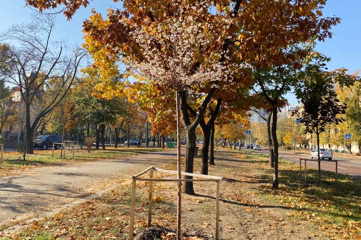 В Киеве на Бульваре Верховного Совета расцвели сакуры