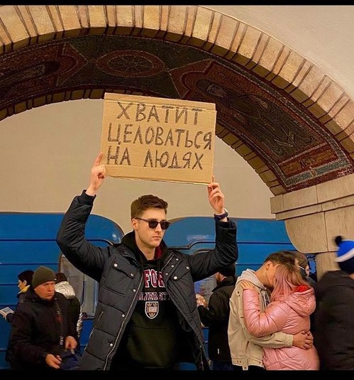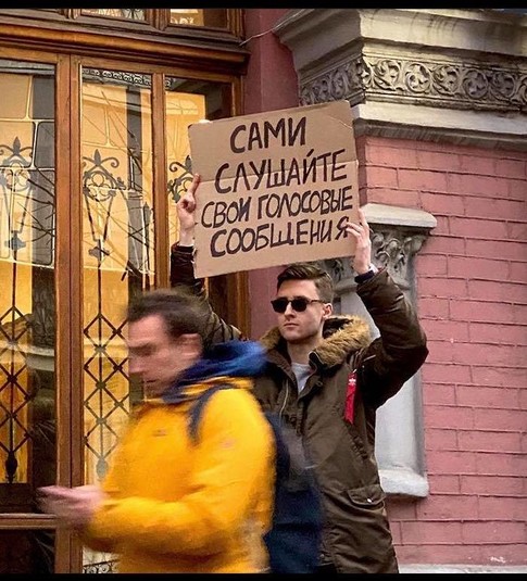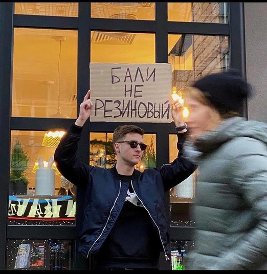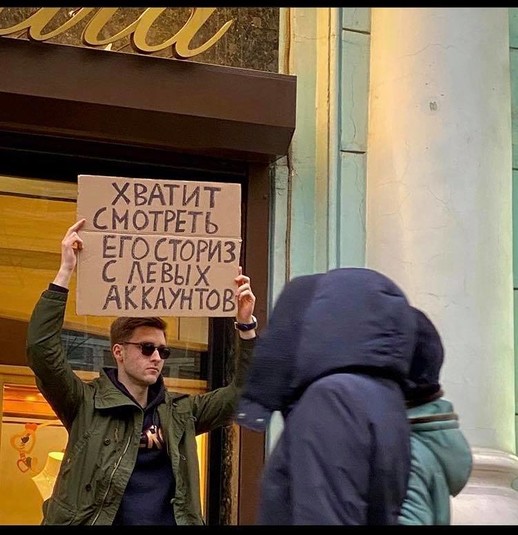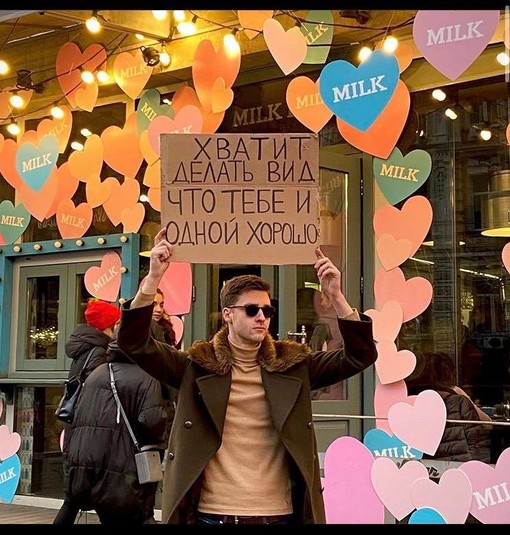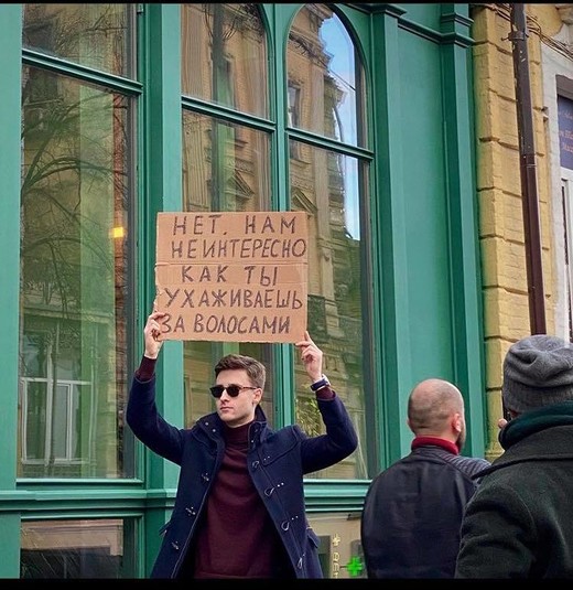 В конце 2019 года в Instagram набрал популярность аккаунт Чувак с плакатом — парень выходил на одиночные пикеты с разными абсурдными требованиями и посланиями. Теперь такой Чувак появился и в Киеве.