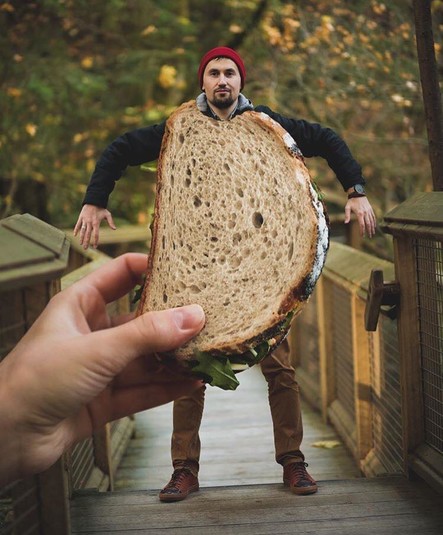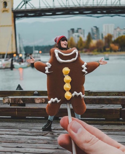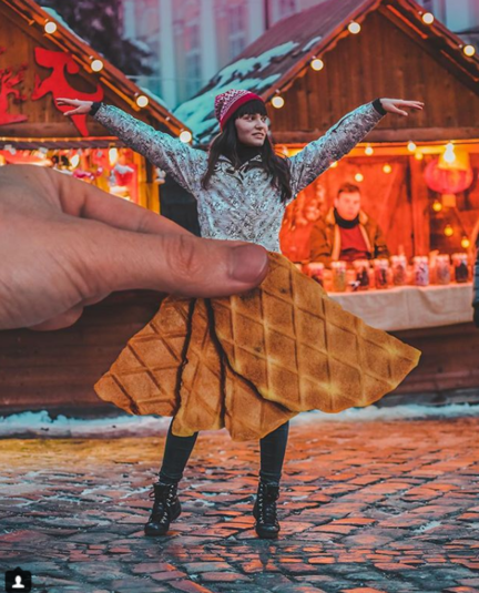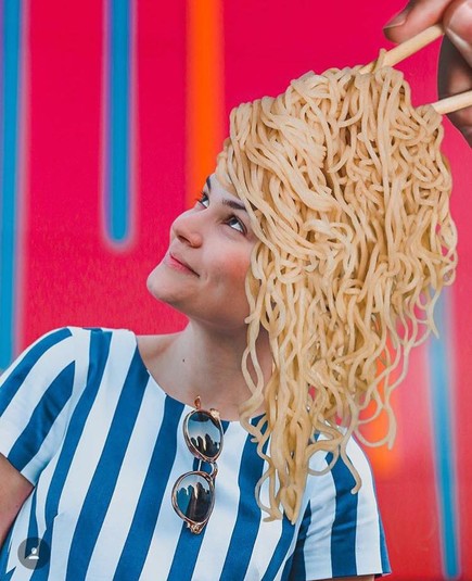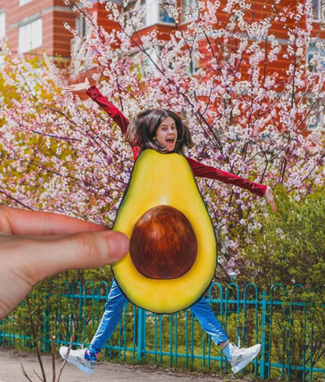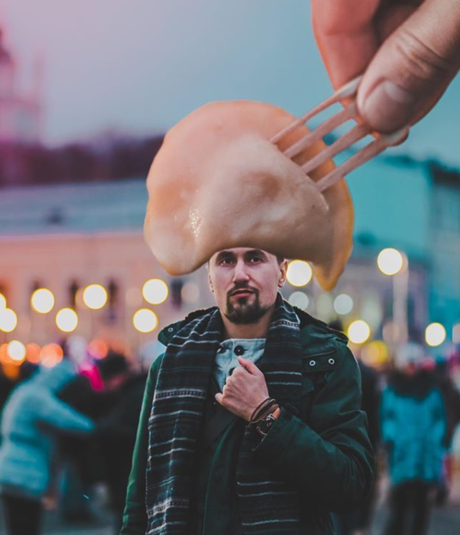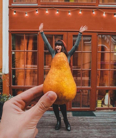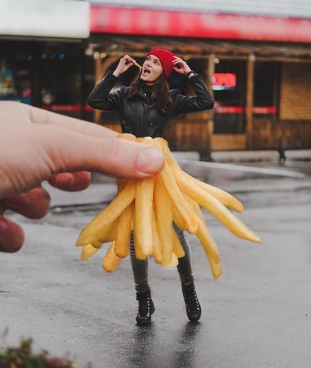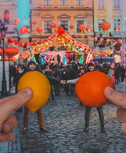 Благодаря точному ракурсу пара создает оптическую иллюзию на снимках, а затем радует мир своими необычными и забавными фотографиями. Так, лапша превращается в шикарную «прическу», тюльпан и вафли — в «юбки», лимон — в модную «шапку», а апельсины — в «трамвайные колеса».