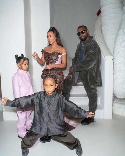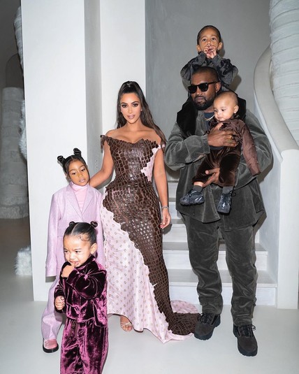 Ким Кардашьян опубликовала рождественский снимок с мужем Канье Уэстом и детьми (Норт, Чикаго, Сейнтом и Псалмом).