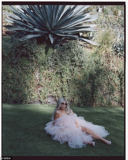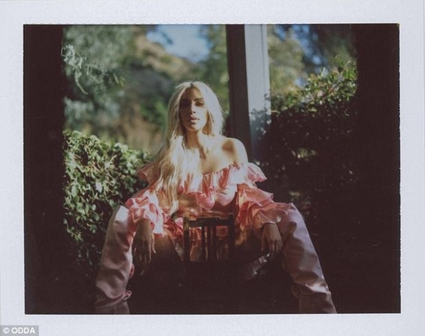 В фотосессии Кардашян еще блондинка. Как известно, после блонда она изменила цвет волос на розовый, а потом перекрасилась в брюнетку.