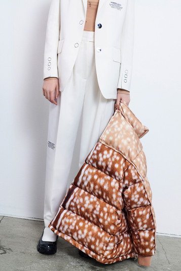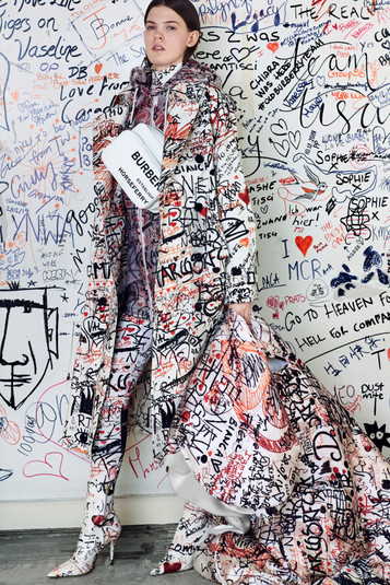 Риккардо часто рассуждает об инклюзивности, в знак уважения к этому явлению он представил длинный белый пуховик с принтом в виде граффити, которые украшают одну из стен на лондонской Бонд-стрит.