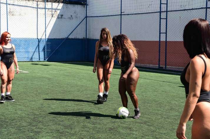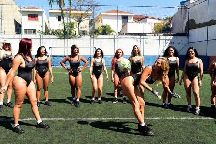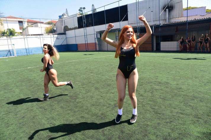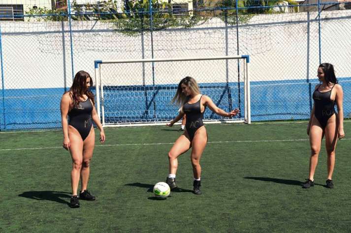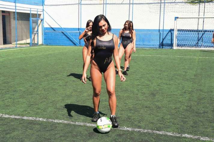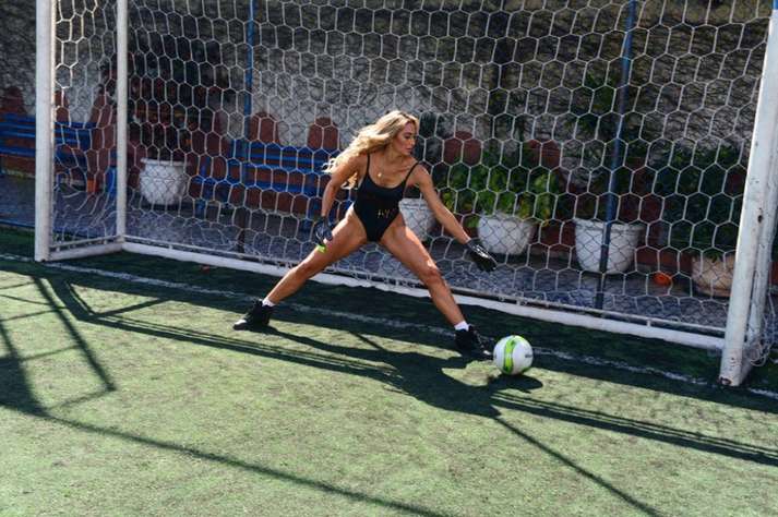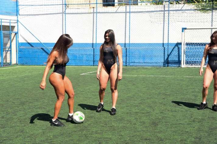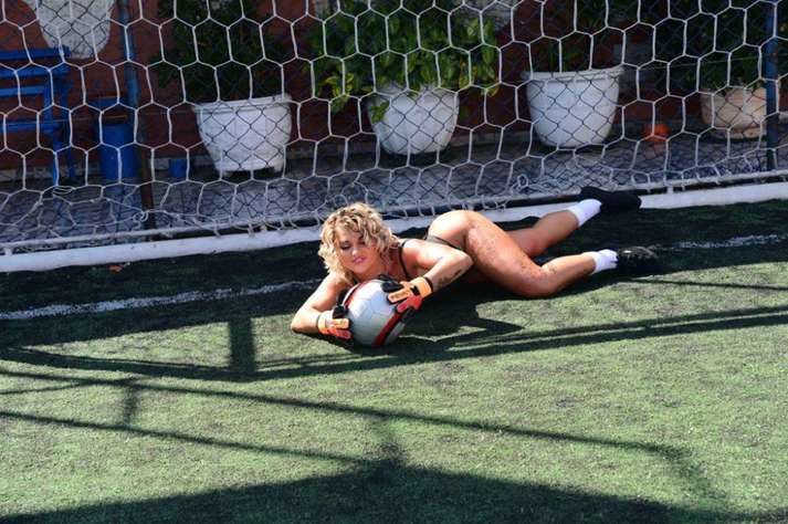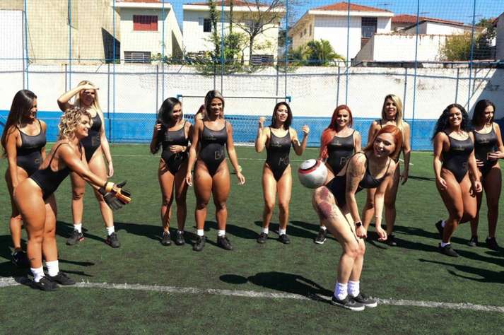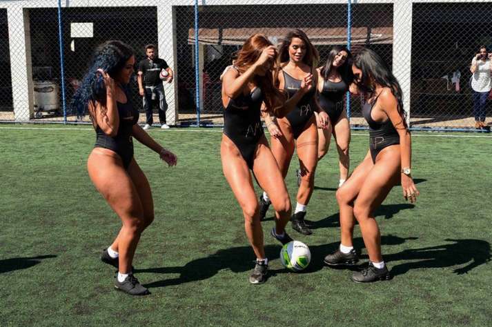 Девушки пришли на футбольное поле в купальниках и поиграли с мячом