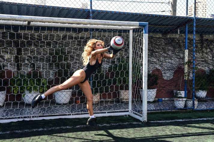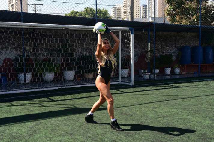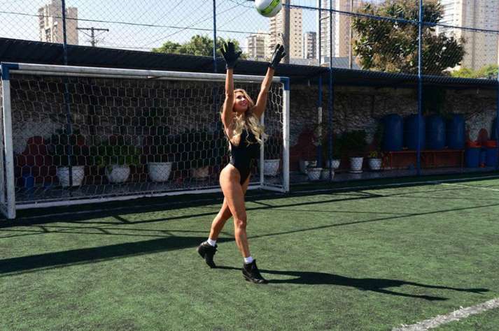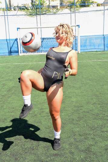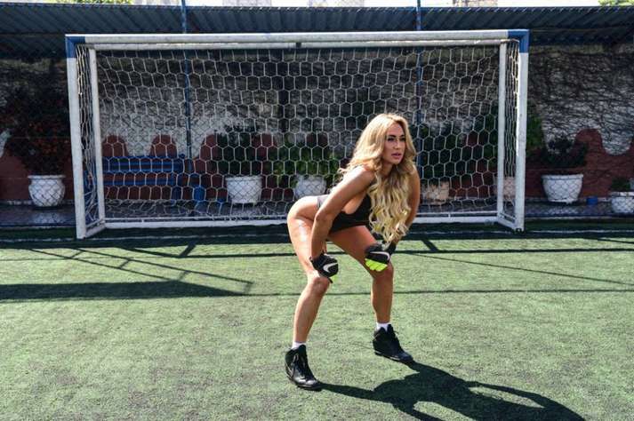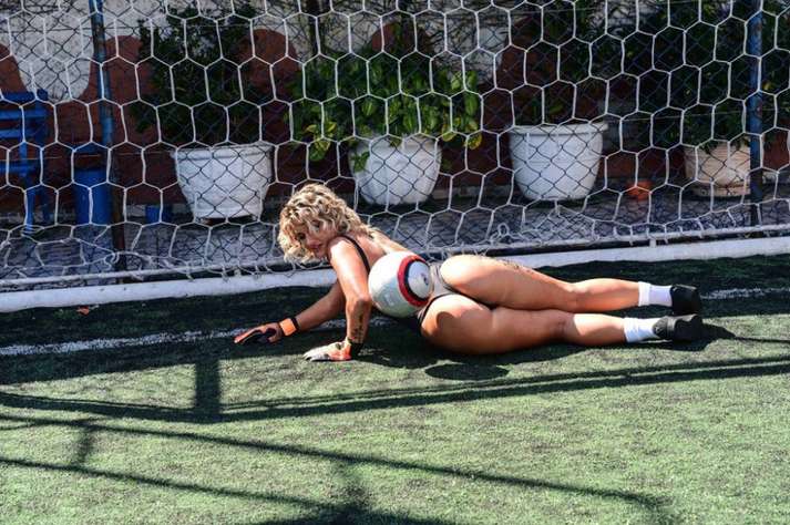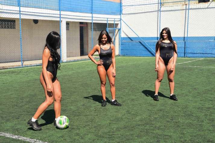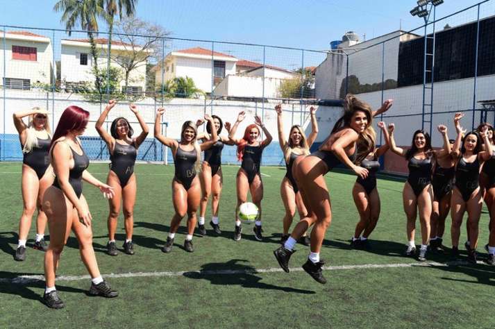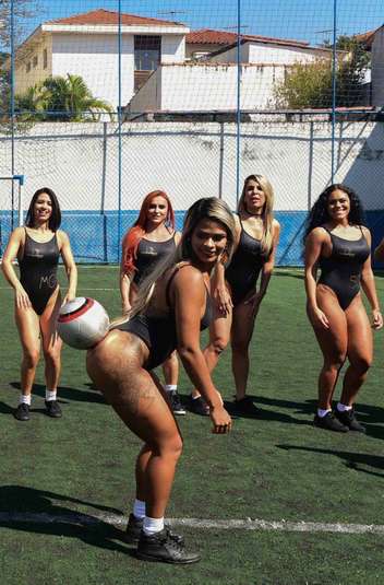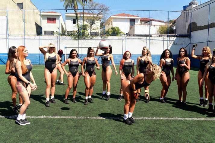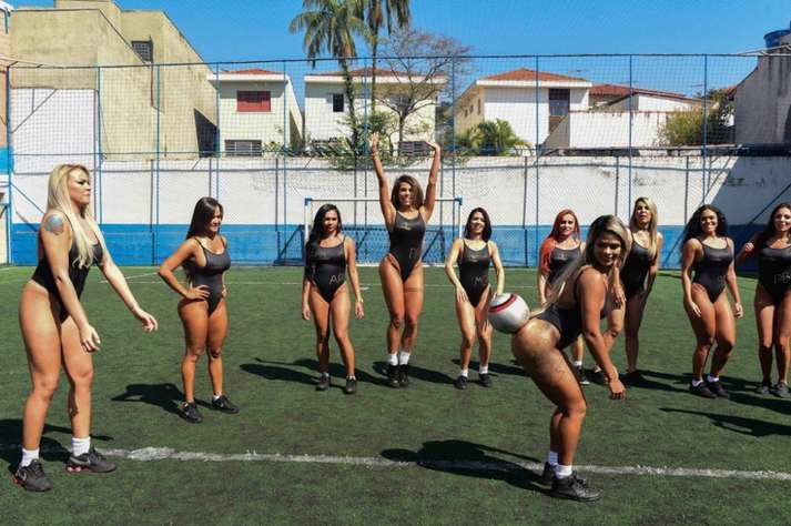 Девушки пришли на футбольное поле в купальниках и поиграли с мячом