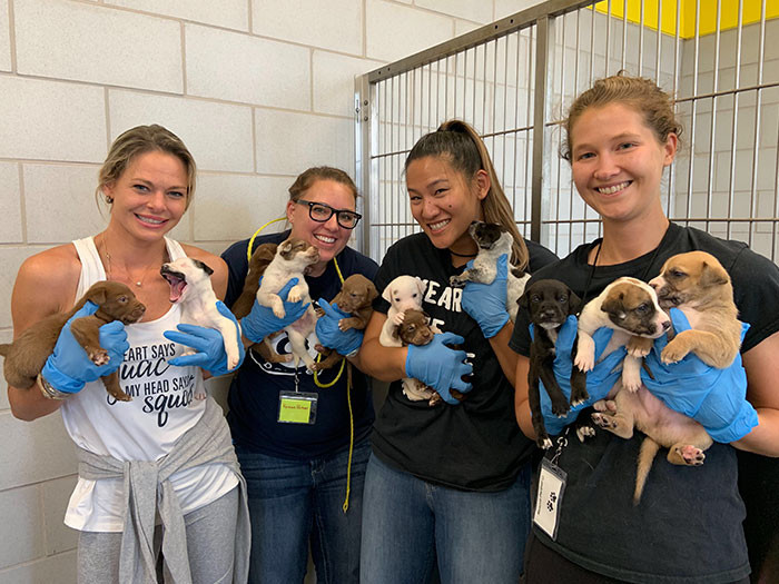 Скоро вся семья переедет в Нью-Йорк, чтобы найти себе там новых хозяев. Работники настолько сильно полюбили щенка, что клеят себе такие же усы, как у нее.