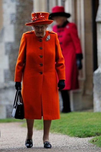 Во время рождественской службы в церкви Святой Марии Магдалины в Сандрингемском дворце (графство Норфолк) королева Елизавета ІІ появилась в стильном костюме морковного цвета. Это уже не первое ее появление на публике в последние дни в нарядах ультраярких цветов.