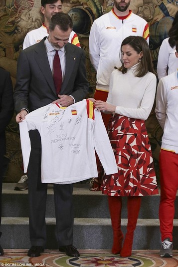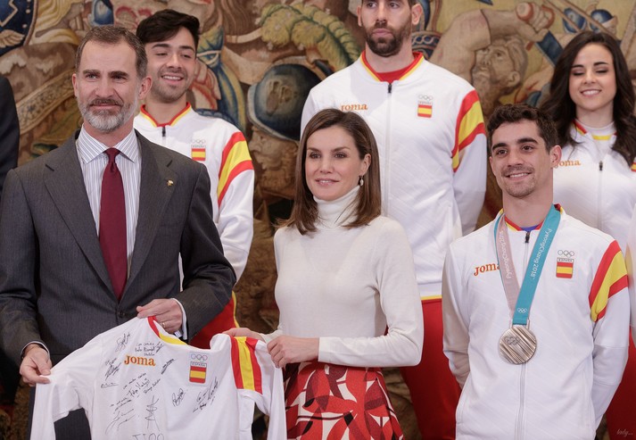 Королева Летиция и король Филипп VI приняли у себя во дворце олимпийскую сборную Испании, которая недавно выступала в южнокорейском Пхенчхане.