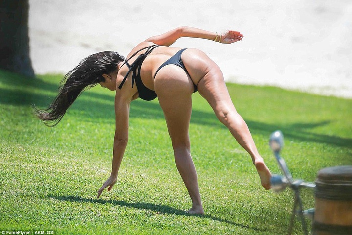 Звезда реалити-шоу Кортни Кардашьян на отдыхе поразила папарацци своей акробатикой в бикини.